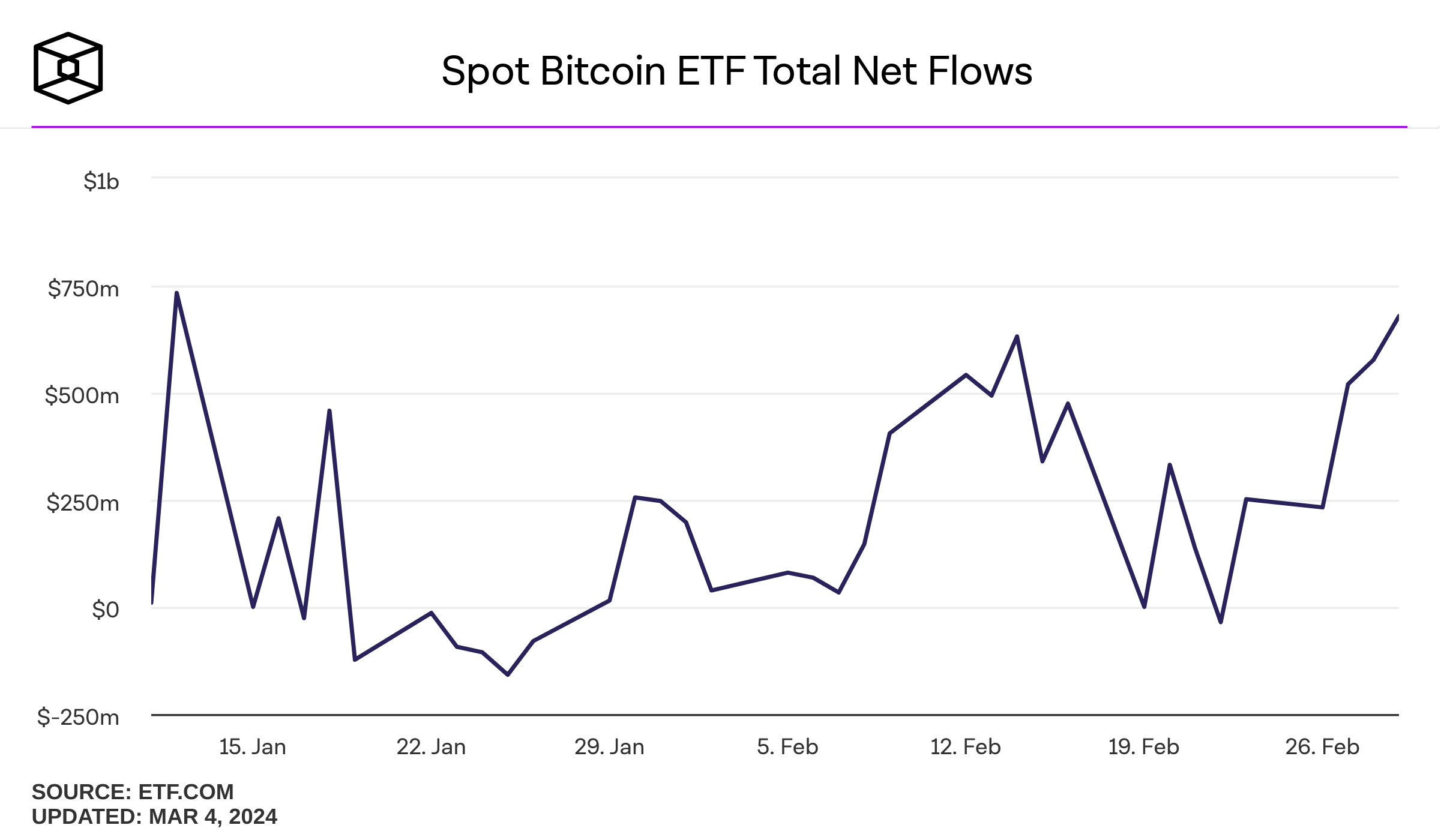Net inflows into Bitcoin Spot ETFs have risen, indicating growing investor interest in the cryptocurrency.