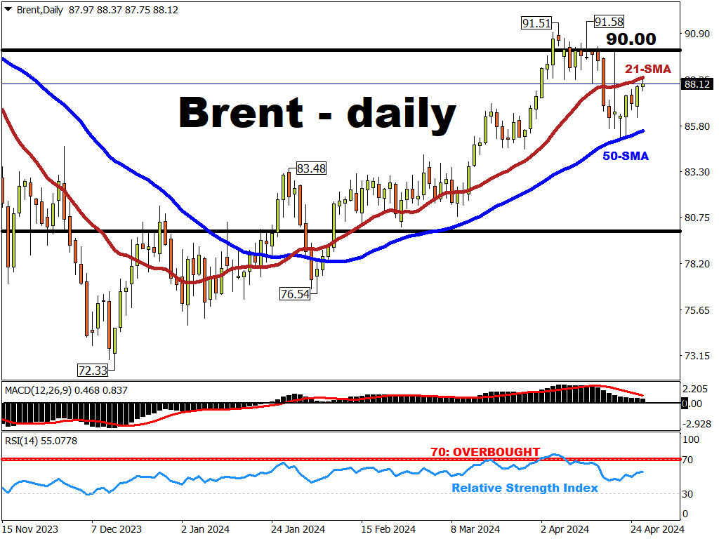 For the present moment, Brent bulls are apparently paying little heed to concerns over slowing US growth (lower demand for oil), and the threat of higher-for-longer Fed rates, in light of yesterday's (Thursday, April 25th) US GDP release.
