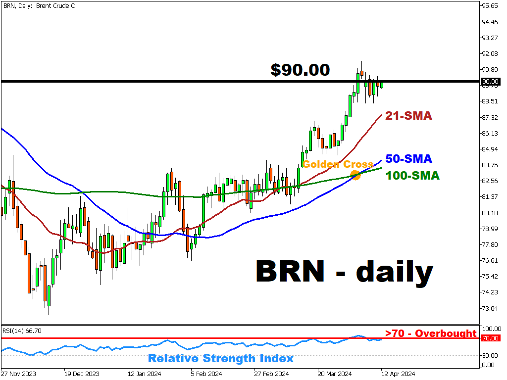 Considering oil’s last week’s performance, the psychologically important $90/bbl is set to provide strong resistance.