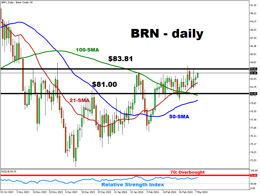 BRN edges higher towards it's 2024 high ($84.14/bbl)
