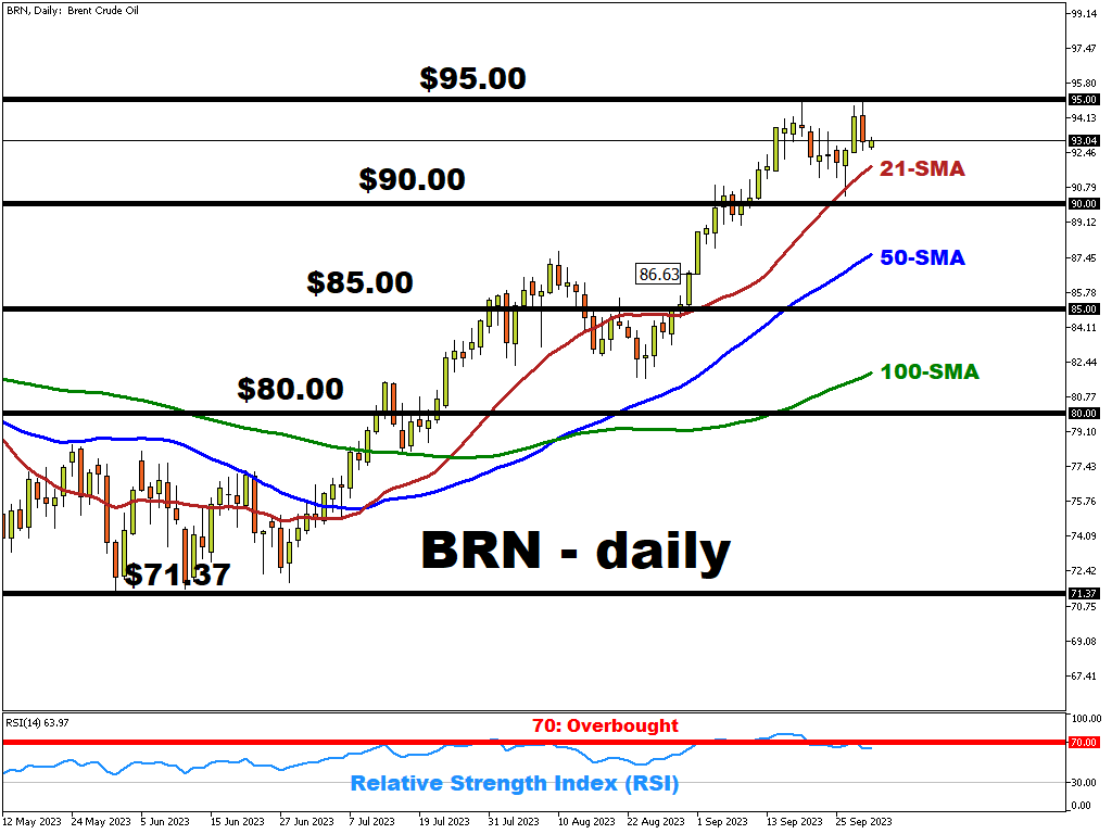 Brent oil appears to have seen a technical pullback recently, with the 14-day relative strength index (RSI) having pulled back below the 70 threshold which denotes “overbought” conditions.