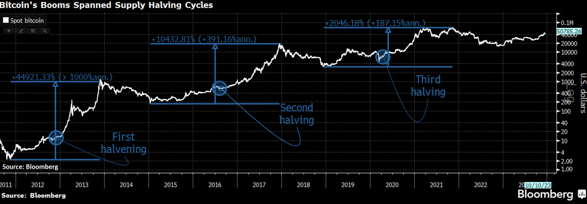- 2012: BTC close price on the halving day – $12; 150 days later - $129 (+943%)