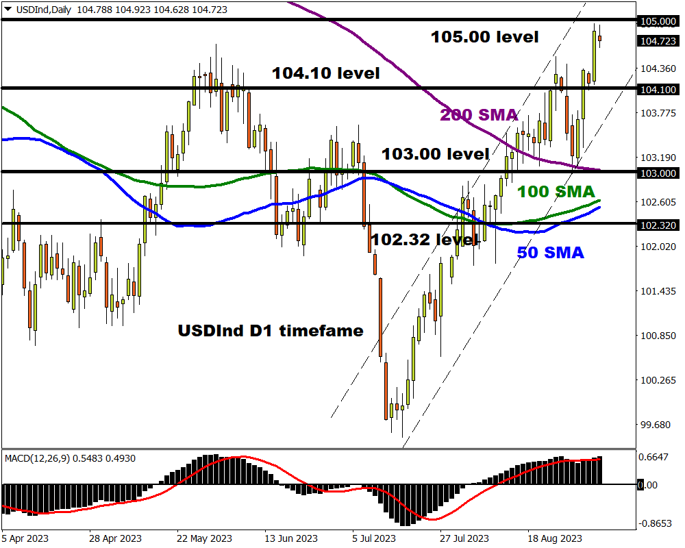 The USD Index remains firmly bullish on the daily charts as there have been consistently higher highs and higher lows. Prices are trading well above the 50,100 and 200-day SMA while the MACD trades above zero. A solid breakout above 105.00 could open the doors to levels not seen since March 2023 above 105.80. Should 105.00 prove to be reliable resistance, a decline back towards 104.10 and the 200-day SMA could be on the cards.