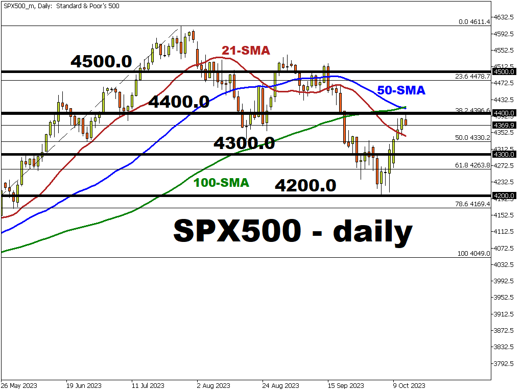 - Next potential resistance level is at 4400 (round number)/4396.6 (38.2 Fibonacci level)