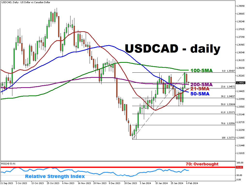 USDCAD continues to fall for the second day in a row on Wednesday after hitting this year’s high (1.35437) on Monday.