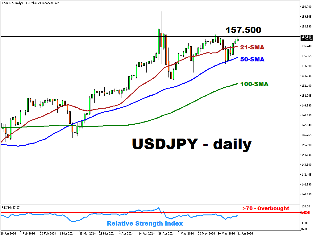 USDJPY appreciates towards 157.5 ahead of US CPI release