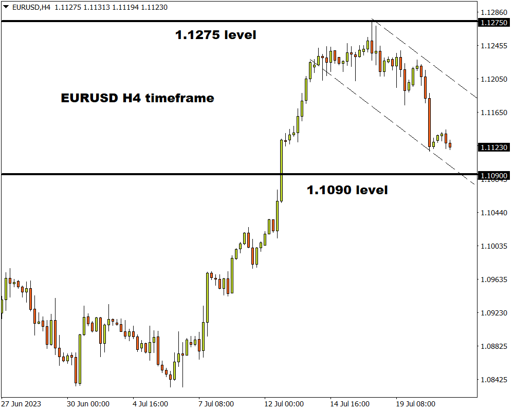 But before we break down the factors that could see the EURUSD end July with a bang, it is worth keeping in mind that the currency seems to be under pressure on the H4 charts. After hitting a 17-month high at 1.1275, bulls seem to be running out of steam with bears greedily eyeing support at 1.1090. The events in the upcoming week could dictate whether prices rebound or sink lower.