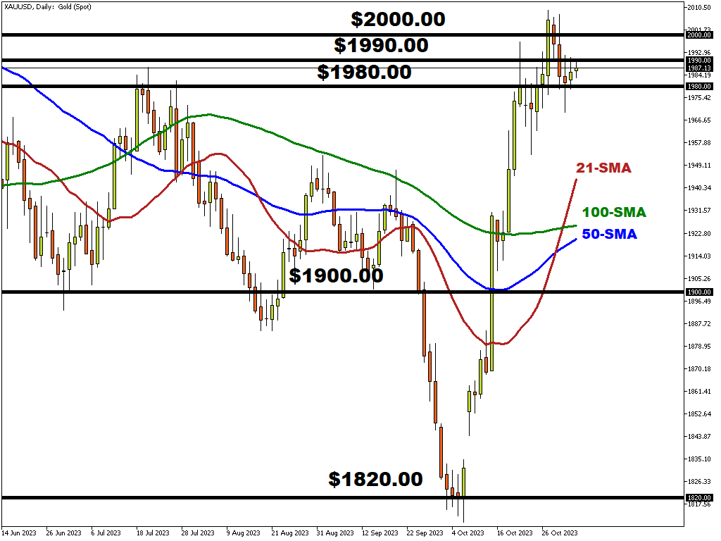 Gold’s proximity to $2000 psychological level underlines a potential for XAUUSD bulls to try and retake it again in the foreseeable future.