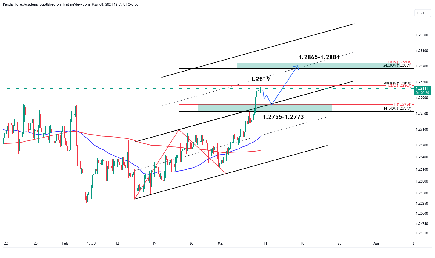 به طور کلی این سناریو تقویت میشود که پوند/دلار آمریکا (GBP/USD) پس از پولبک به بازه مقاومتی شکسته شده در محدوده 1.2773-1.2755، میتواند تا بازه مقاومتی تراز میانی در محدوده 1.2881-1.2865، افزایش یابد.
